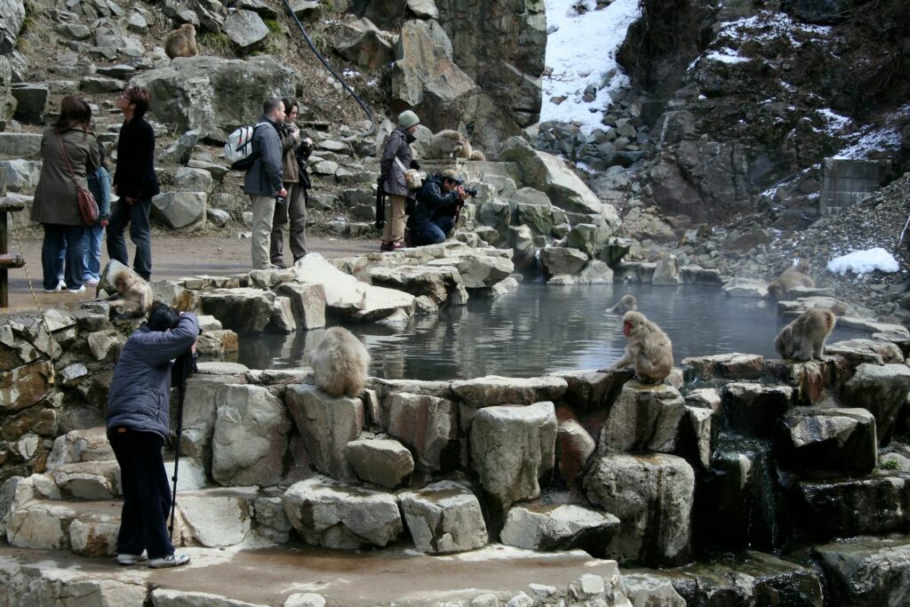 The hot-spring bathing behavior is most associated with cold weather. In warmer periods, you may see fewer “bath moments” even if monkeys are present.